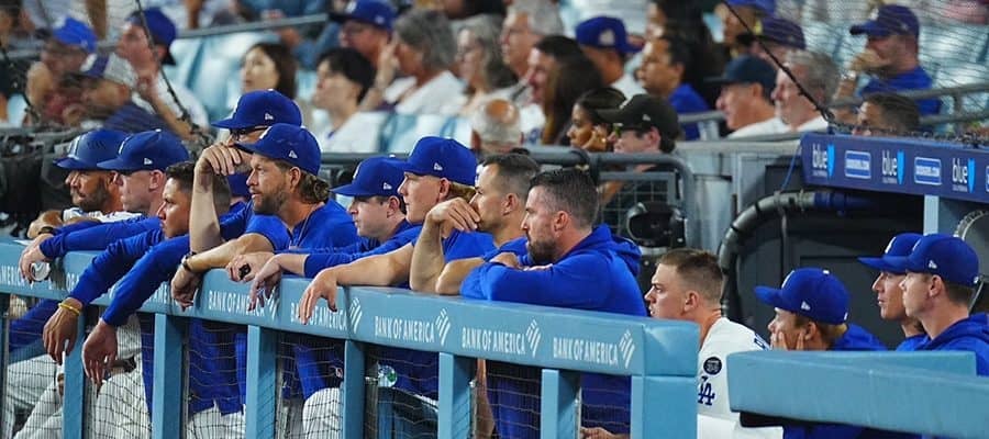9回、被弾直後のドジャースベンチ【写真:荒川祐史】