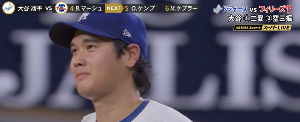 ドジャースの大谷翔平投手がフィリーズ戦に「1番・投手兼DH」で先発登板。4回2死走者なしの場面で、エンゼルス時代の元同僚で仲の良さでも知られるブライス・マーシュと対戦し、思わず笑顔を見せる場面があった。