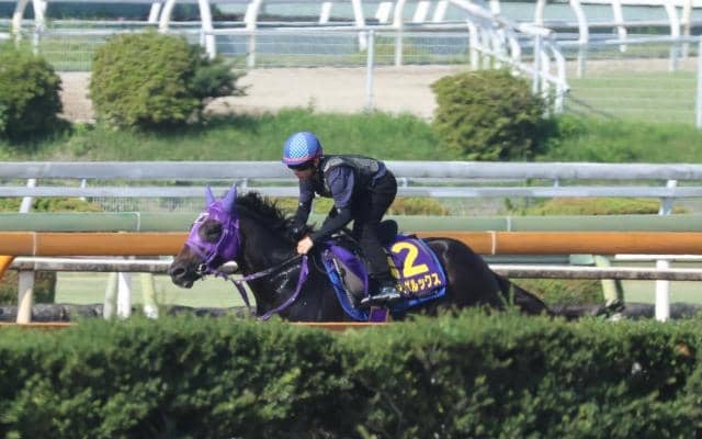 8時30分すぎ。馬の少ない、閑散としたCWへ松若風馬騎手を背に1頭で正面から入場。ゆったりとした走りで1コーナーから2コーナーを抜けていき、6F標識から追い切りという内容。ただ、向正面での走りには一切力んだ感じがなく、常にゆったりと走ることができている。