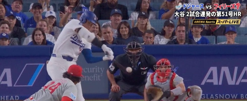 ドジャースの大谷翔平投手が「1番・DH」でフィリーズ戦に先発出場。8回の第4打席では2試合連発となる51号ホームランを放った。規格外の一打に解説陣も大興奮となった。