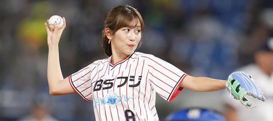 元NHKで現在はフリーの中川安奈アナウンサーが18日、神宮で行われたヤクルト-巨人戦で始球式を行った。タイトなショートパンツからの投球に場内は騒然とした。