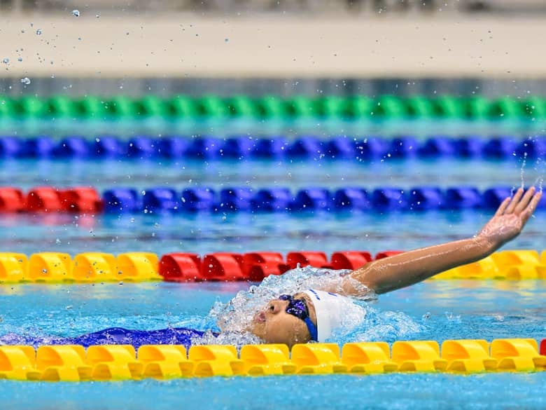 レジェンドを追悼大会初日。決勝の前には、9月5日に病気で亡くなったパラ水泳のレジェンド、成田真由美さんの功績を偲び、スクリーンに追悼映像が流された。成田さんは、東京大会までパラリンピックに6大会出場し、計15個の金メダルを獲得。2004年のアテネ大会で日本代表選手団過去最多の1大会で7個の金メダルを獲得するなど、数々の伝説を残した。大会中、パラ水泳のアスリート委員会は喪章を配布。多くの関係者が黙とうをささげた。