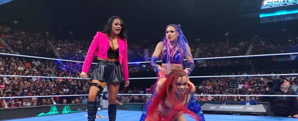 そんなジュリアは日本時間9月13日に行われた「SMACK DOWN」でB・ファブと試合を行うことに。しかし、試合前に代理人のキアナ・ジェームズがB・ファブに手を出されたことでジュリアが激昂。キアナと共にB・ファブをリング内外ボコボコにして試合を行わせなかった。