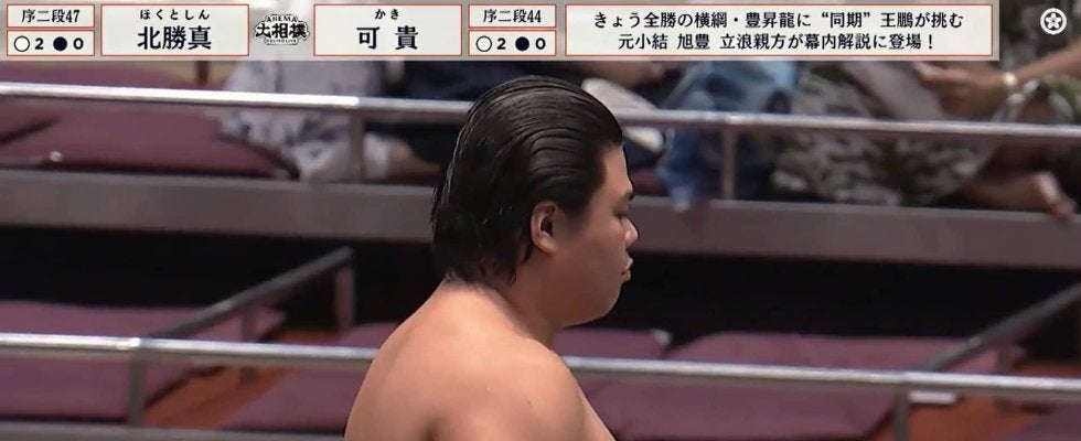 六日目の取組では、序二段四十七枚目・北勝真(八角)と対決。立ち合い胸で当たった可貴は落ち着いて突いて攻め、慌てた相手をはたき込んで一瞬で仕留めた。圧勝した可貴は片足立ちでバランスをとり、その後、仁王立ち。表情一つ変えずに無傷の3連勝となる白星。敗れた北勝真は1敗目を喫した。
