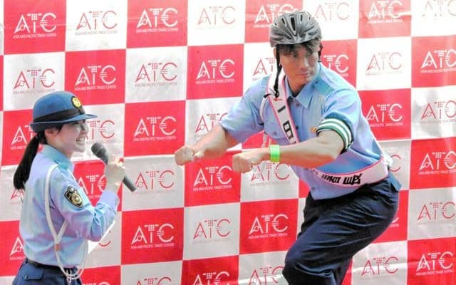 21日から始まる秋の全国交通安全運動を前に、大阪府警住之江署は19日、阪神タイガースやオリックスで活躍した糸井嘉男さんを一日署長に招き、大阪市住之江区のアジア太平洋トレードセンター(ATC)で交通安全教室を開いた。地域の幼稚園や小学校に通う子ども約200人や、保護者らが参加した。