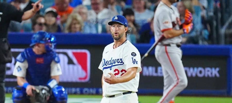 先発したドジャースのクレイトン・カーショー【写真:荒川祐史】