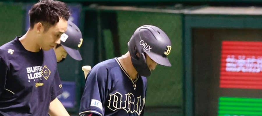 オリにアクシデント…“首位打者”の西川龍馬が途中交代 自打球で悶絶→直後の守備に就かず | 野球