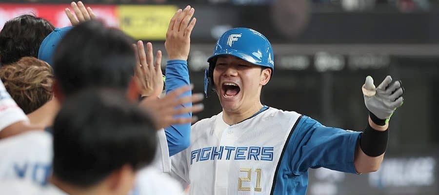 首位のソフトバンクを追いかけ負けられない戦いが続く中、この日は2安打4打点と躍動。「中田さんも打点稼ぎってイメージがありますし、やっぱり勝負強い打撃っていうのは受け継いでいきたいなって思ってます」。尊敬と感謝の思いを胸に、その背中を追い続けていく。(町田利衣 / Rie Machida)