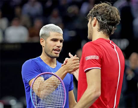 ダブルス:アルカラス/ メンシク 7-6 (9-7), 6-4 フリッツ/ ミケルセン