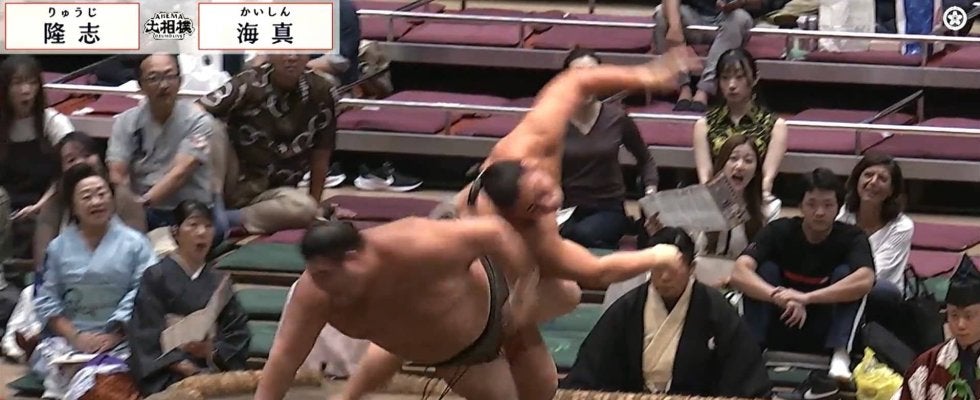 土俵際で海真が投げに出て、体が一瞬離れると、隆志はすかさず相手の左足を掴んだ。その瞬間、海真はバランスを崩し、後ろへと派手に倒れ込んでしまった。決まり手は「切り返し」。大相撲相撲協会のホームページで確認すると、発生確率は0.2%というレア技だ。隆志は2勝目、海真は3敗目を喫した。