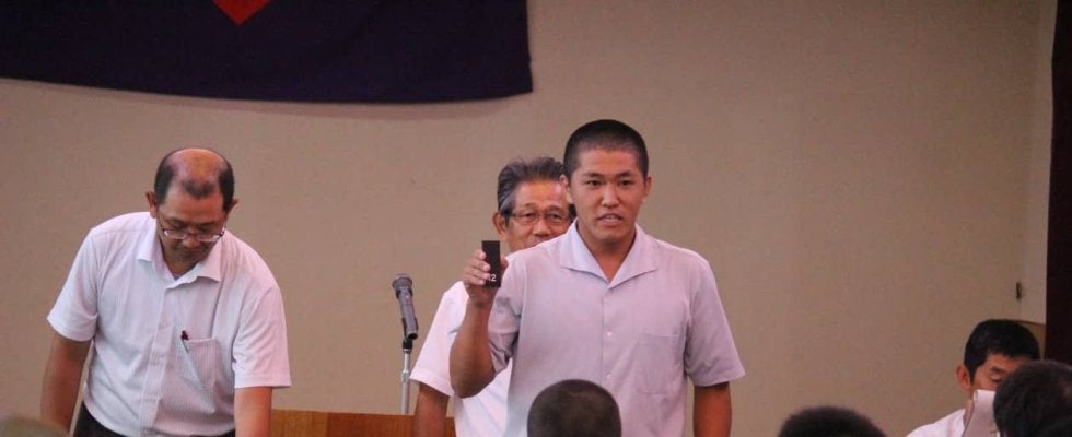 9月24日(水)愛媛県松山市のにぎたつ会館で「令和7年度秋季四国地区高等学校野球愛媛県大会」の抽選会が開かれ、予選を勝ち抜いた大洲・大洲農連合を含む17校・16チームの主将・責任教師が参加して行われた。