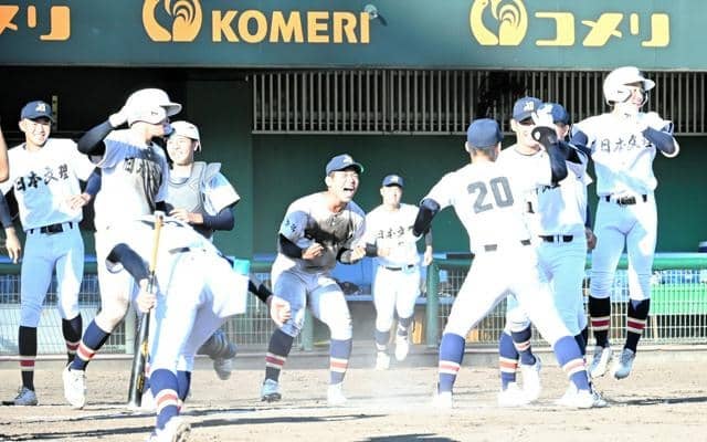 終盤の猛攻で日本文理が夏の覇者から新潟の頂点の座をもぎ取った。七回までに7点をリードされたが、中軸から始まった七回裏に、4番渡部倖成(2年)の二塁打など長短打4本に敵失も絡み、打者一巡の攻撃で2点差まで追い上げた。下位打線から始まった九回裏には、先頭打者の染谷崇史(同)の右越え二塁打を足がかりに、四死球で走者をためると、3番秦碧羽(あおば)(同)の犠飛で1点差に。最後は6番を打つ安達煌栄千(こうえいち)(同)が左中間を破るサヨナラ適時打を放った。