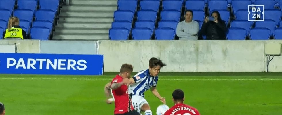 レアル・ソシエダに所属する日本代表のMF久保建英が高精度クロスを供給するも、チームメイトがまさかのシュートミス。アシスト未遂にファンが落胆している。