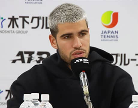 男子テニスの木下グループ ジャパンオープンテニス チャンピオンシップス2025(日本/東京、ハード、ATP500)は25日、シングルス1回戦が行われ、第1シードのC・アルカラス(スペイン)が世界ランク41位のS・バエス(アルゼンチン)を6-4, 6-2のストレートで下し初戦突破を果たすとともに、同大会で初白星を挙げた。この試合でアルカラスは足首を負傷したが、試合後の会見で「残りのトーナメントへの影響は分からない」と語った。