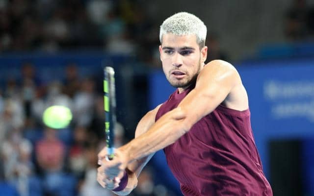 東京・有明テニスの森公園で開幕したテニスの木下グループ・ジャパンオープン男子は25日、シングルス・ダブルスの1回戦があり、世界ランク1位のカルロス・アルカラス(スペイン)が有明コロシアムの第4試合に登場しました。日本人選手ではシングルスに西岡良仁、島袋将、望月慎太郎、ダブルスに上杉海斗、渡辺聖太組が出場しました。