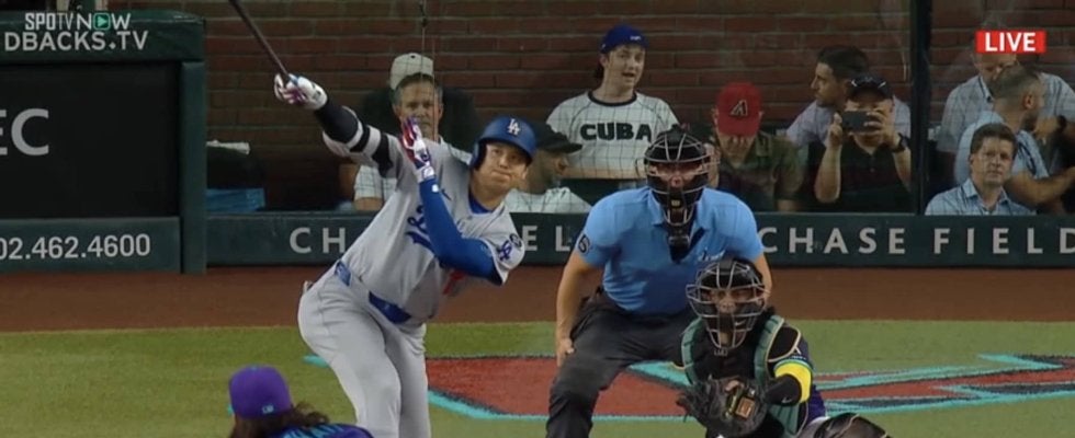 ドジャースの大谷翔平投手がダイヤモンドバックス戦に「1番・DH」でスタメン出場。勝てば地区優勝が決まる大一番で驚愕のホームランを放ち、敵地がMVPコールに包まれた。