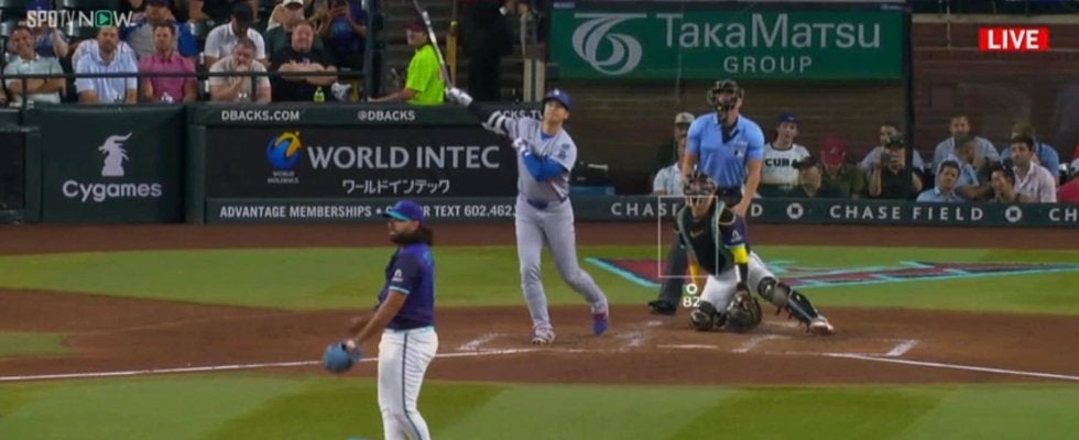 ドジャースの大谷翔平投手がダイヤモンドバックス戦に「1番・DH」でスタメン出場。第3打席で規格外のホームランを放ち、相手投手を絶望させる場面があった。