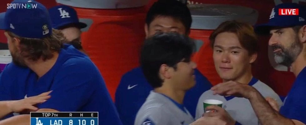 この日は大谷翔平の54号やフリーマンの2本のホームランなど、大量援護が付いていたこともあり、マウンドを降りた山本は、ベンチでドリンクを口にしながらリラックスした表情。そこに大谷が笑顔で駆け寄りハグすると、その後もチームメートに次々と頭を“ポンポン”され、ベンチは祝福ムードに包まれていた。