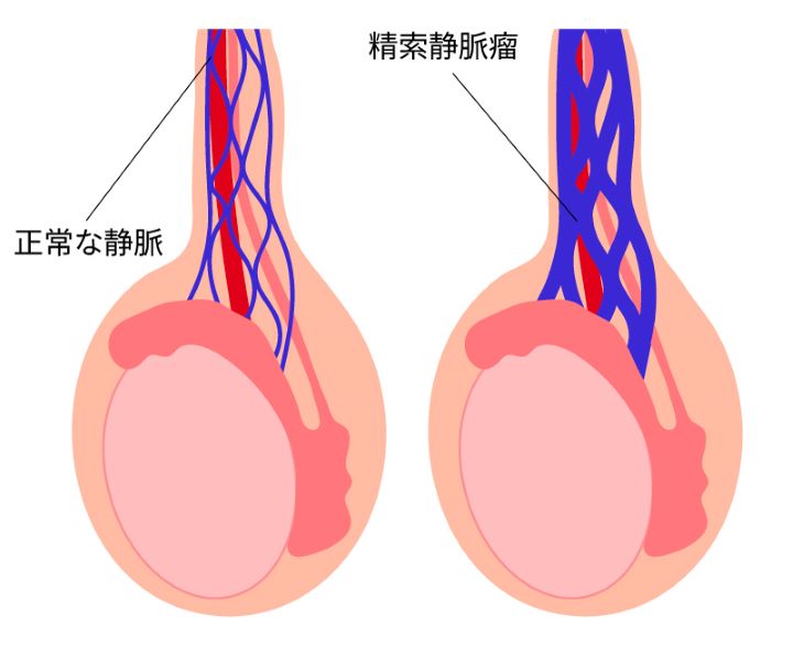 静脈瘤によって陰嚢内の血液が滞留すると、精巣の温度が上昇し、精子を作る働きに悪影響を及ぼします。精子にとって最適な温度は体温より少し低い約32~34℃ですが、精索静脈瘤があると精巣温度が体温並みの36~37℃程度まで上昇し、精子の数や運動率が低下してしまいます。