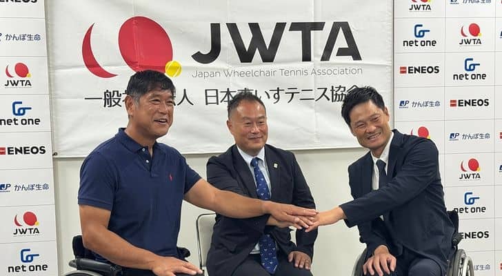 9月27日にスタートする車いすテニス大会「木下グループジャパンオープン」(東京・有明コロシアム)を前に、日本車いすテニス協会(JWTA)は26日に会見を開き、日本テニス協会(JTA)副会長や国際テニス連盟(ITF)の理事を務める川廷尚弘氏が新たに会長に就くこと、日本の車いすテニス界を切り拓いてきた齋田悟司氏がアドバイザー、国枝慎吾氏が外部アドバイザーに就任したことを発表した。