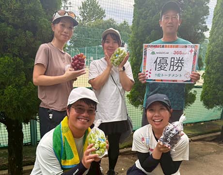 9月13日(土)に京王テニスクラブにて【365cup 季節限定シャインマスカットCUP団体戦(初級〜中級程度)】が開催され、『ファモ』が見事優勝をおさめた。
