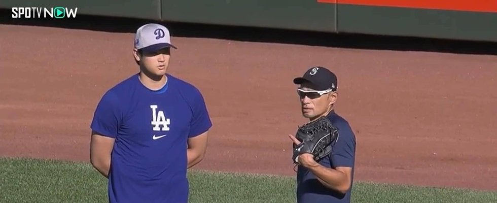試合前、ドジャースの大谷翔平投手が、マリナーズのイチロー会長付特別補佐兼インストラクターの元を訪れ談笑。秋に差し掛かるシアトルで、日本が誇るスーパースター同士の共演が実現した。