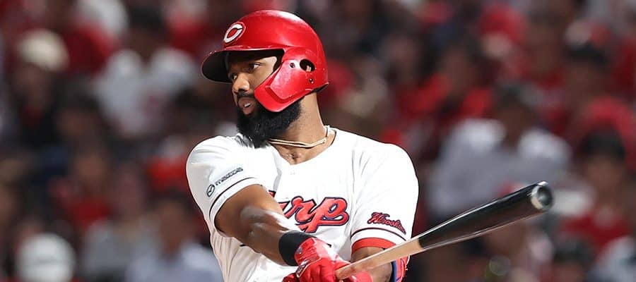 藤浪の154キロをフルスイング→左膝付近に直撃■広島 ー DeNA(28日・マツダスタジアム) 広島のサンドロ・ファビア…