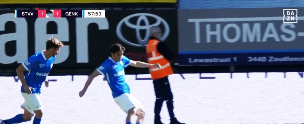 ボックスすぐ外の左でヘンクのDFザカリア・エルウアディが、DFレイン・ファン・ヘルデンに足を踏まれて倒れ込む。このプレーでファン・ヘルデンにはレッドカードが出され、ヘンクにはFKが与えられた。
