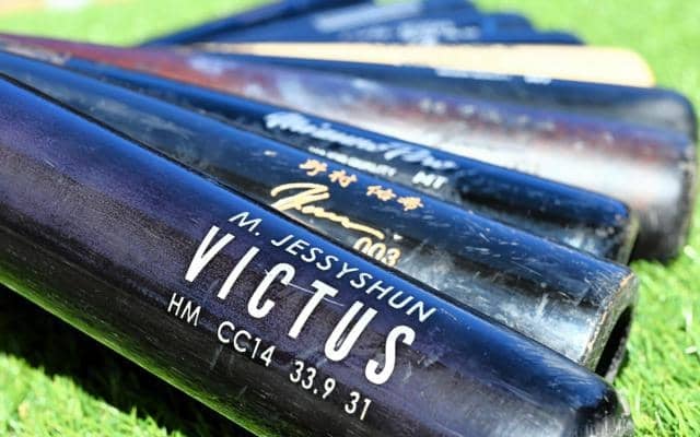 バットの素材によって刃物を入れた時の感触が違うようで「ガタシュウ(山縣選手)のはやわらかめですね」「パイナポー(水谷選手)のはガチガチですよ」などとファン同士が、うれしそうに語り合っていた。