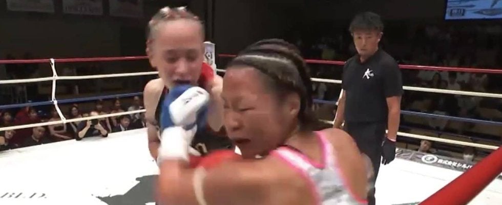 21歳の新鋭の強気のファイト、試合時間も残りわずかで相手の攻撃に合わせる強烈なカウンターの左フック。“グシャっ”と鈍い音とともに相手が逆方向へ捻じれるように崩れ落ちる衝撃ダウン。実況席からも「女子の試合ではない(珍しい)倒れ方」と驚きの声が上がる破壊力満点のKO劇だった。