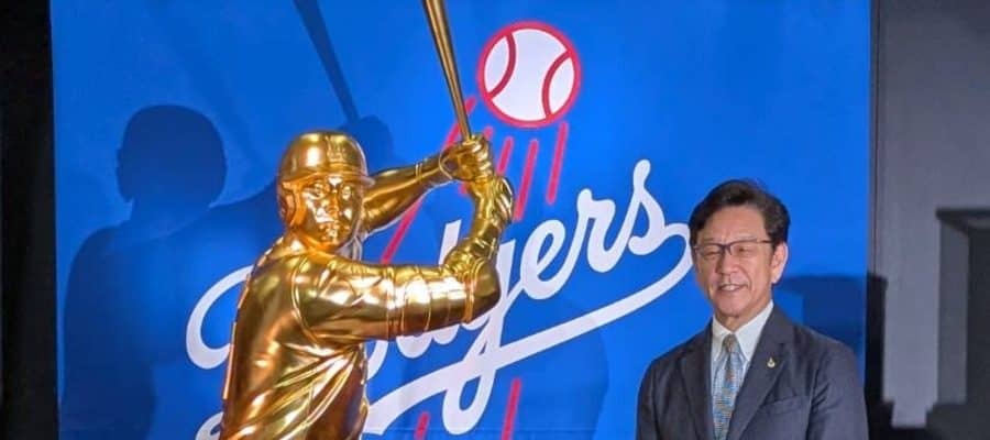 ドジャース・大谷翔平投手の等身大の黄金像が登場した。横浜高島屋で始まった「横浜大黄金展」で1日、お披露目され、日本ハムのチーフ・ベースボール・オフィサーを務める栗山英樹氏が登場。教え子との思い出などを語った。
