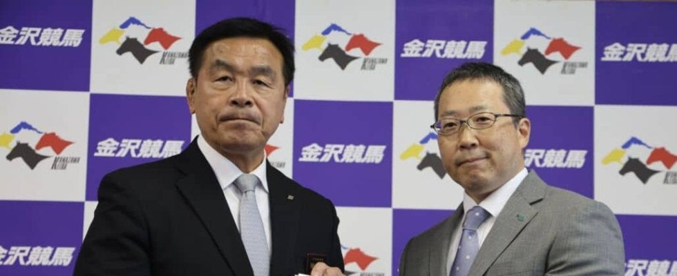 贈呈式には、全国公営競馬主催者協議会会長代理の武川晴俊氏と、地方競馬全国協会理事長の斉藤弘氏が出席。見舞金を受け取ったのは、金沢競馬管理者である石川県知事の馳浩氏だった。