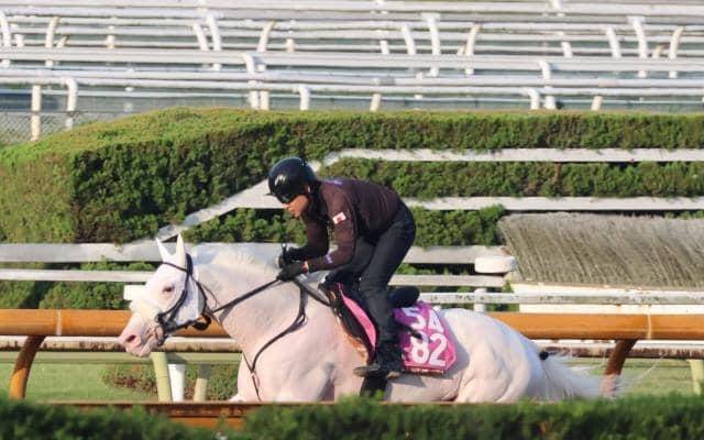 時計は6F81.0〜5F64.9〜4F50.2〜3F36.9〜3F24.2〜1F12.3秒。デビュー前にCWで追い切ったことがあり、6月4日のCW6F時計が82.9秒。全体を大幅に縮めてきたところは素晴らしいが、当時はラスト1Fが11.4秒だったので、本気で追い切った時にどのくらい時計を詰めるかは興味深いところ。レースまではまだまだ日があるだけに、これからの追い切りにも注目したい。