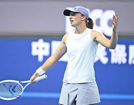 女子テニスのチャイナ・オープン(中国/北京、ハード、WTA1000)の1日、シングルス4回戦が行われ、第1シードのI・シフィオンテク(ポーランド)は第16シードのE・ナバロ(アメリカ)に4-6, 6-4, 0-6のフルセットで敗れ4回戦敗退となり、ベスト8進出を逃した。