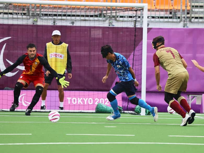 ブラインドフットボールは画面では何度も見てきたのですが、生で見たの初めてで。「絶対見えてるでしょ」と思いました。正直、もう少しモタモタするのかなと思っていたんですよ。ところが、全然! ピタッと足元に収めるし、前に行ったボールもしっかり処理するし、シュートまでちゃんと行くし。ディフェンスの選手なんて、ちゃんとバックパスしてて、うまいなって。
