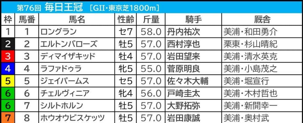 JRAは3日、第76回毎日王冠(GII、東京芝1800m)の枠順を発表した。