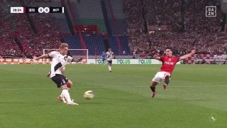 「レッドじゃね?」バイエルンFWのハイキックが頭部にモロ直撃!→流血ノックアウトでファン衝撃「恐怖映像やん」「完全に入ったな」
