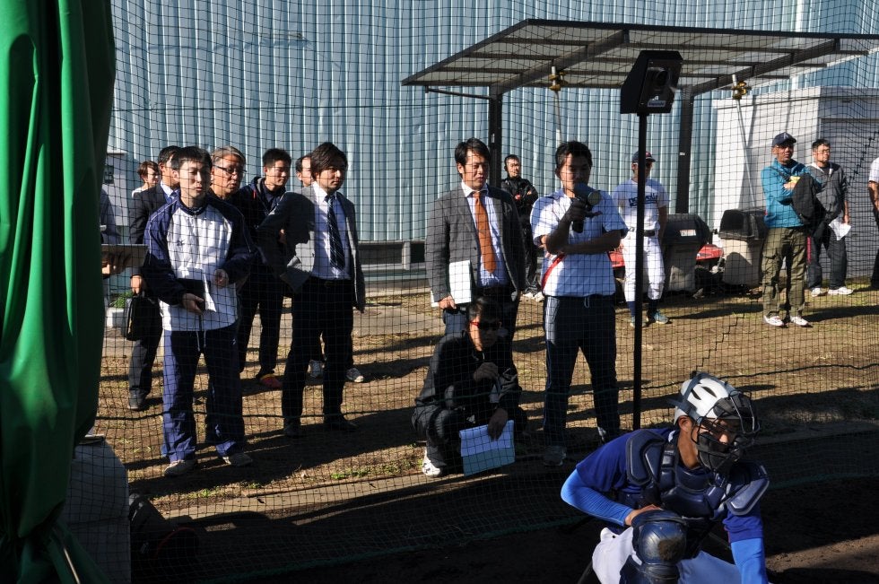 「トラッキングシステム」と呼ばれるものをご存知だろうか。昨今、スポーツ中継の現場などで度々耳にするようになったこのシステムは、画像解析の技術や、コンピュータ技術の進歩によって、野球でいえば、投手が投げた球速、打者の打球速度やその角度に至るまであらゆるものを数値化できるものである。今回トライアウトの現場に設置された『Rapsodo』は、投手の投球の「球速」「回転数」「回転軸」などが簡易に分析できるトラッキングシステム。この日トライアウトを受けにきた投手たちも同システムで解析された。今回は数値的な部分で合否を判断するようなことはない、あくまで“トライアル”での設置であったが、普段は見られない数字の抽出に、同現場に選手をチェックに訪れていた高知ファイティングドッグスの駒田徳広監督らも、興味津々の様子だった。