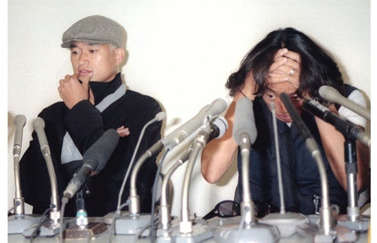 W杯メンバーから漏れ、帰国後に空港での会見に臨んだ北澤豪(右)と三浦知良。photo by Kyodo News