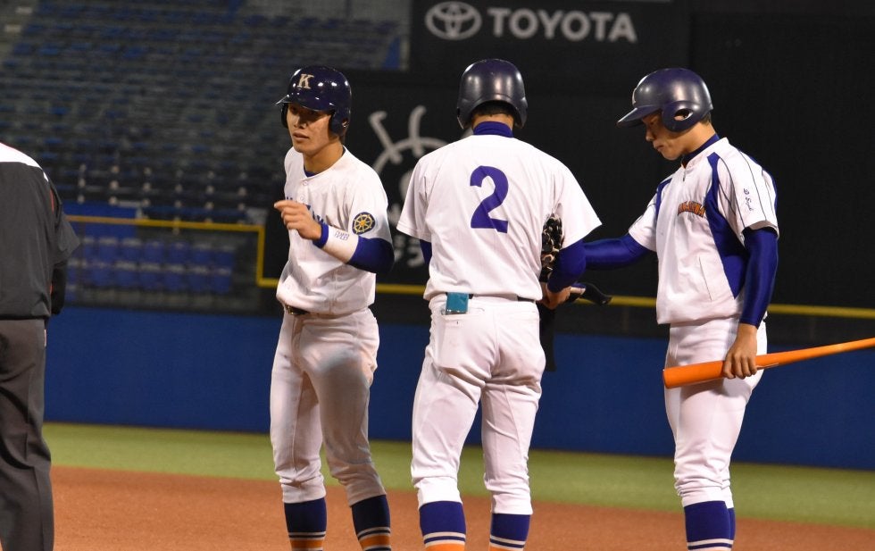 初回に3点を失った駒澤大は4回、3四死球でチャンスを作ると敵失で1点を返す。なおも続くチャンスに長壱成捕手(3年・智弁和歌山)が2点タイムリーを放って同点に追いつく。7回には1死から打ち取ったかのように見えたフライがレフトとセンターの間に落ちる二塁打となり勝ち越しのチャンスを作ると、諸積怜外野手(3年・流経大柏)が三塁線へセーフティバントを試み、これが一塁への悪送球を誘って二走が生還。さらにこの回に田中佑汰(3年・石見智翠館)にもタイムリーが生まれて5-3とリードを奪った。