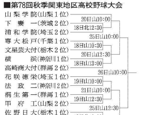 下妻二は駿台甲府、下妻一は浦和学院 秋季関東高校野球対戦相手決定 | 野球