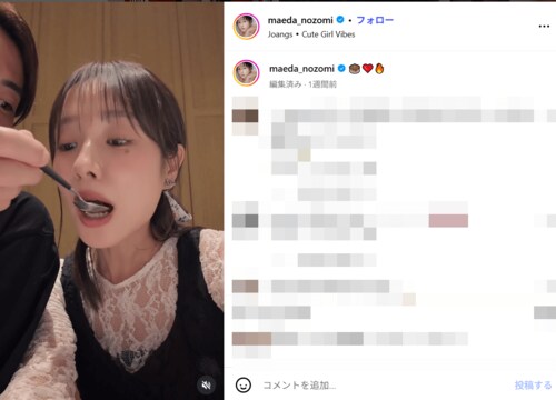 この日、10月2日で29歳を迎えた夫・渡邉の誕生日をケーキと花束のアイコンでお知らせ。肩を寄せ合いラブラブな雰囲気が漂う二人は、誕生日を祝って食事しているのか、《たべた〜い》とおねだりする愛妻前田にスプーンで優しく食事をダイブ。その幸せそうな前田の表情がたまらなく無邪気で、上目遣いや舌ペロシーンも収められていてあざとかわいさ満点だ。