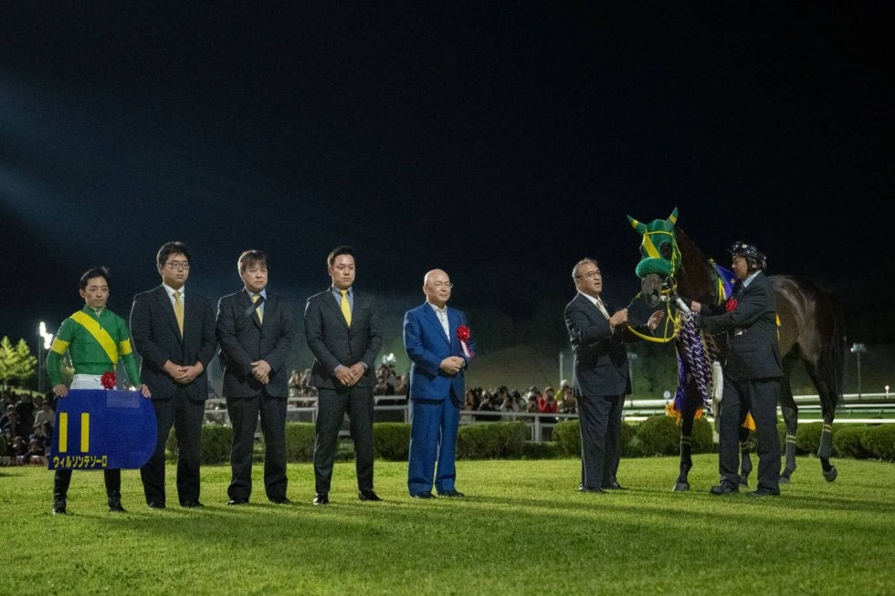 川田将雅騎乗の4番人気、ウィルソンテソーロが交流G1・2勝目をマークした。好メンバー後揃った一戦。向こう正面では先行争いを見ながらの一角で、馬群の中6番手付近。久々のマイル戦も追走は楽な雰囲気で進出して行った。4コーナーでは2列目まで進出。直線に向いてからの脚色は一頭抜けており、ラスト1ハロン付近であっという間に先頭に立つと、そのまま4馬身2着以下を突き放した。2着には初ダートだったシックスペンスが前々から粘り込んだ。