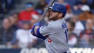 マンシーの打球がまさかの中ゴロ併殺打となった(C)Getty Images ドジャースが現地時間10月13日、敵地でブル…