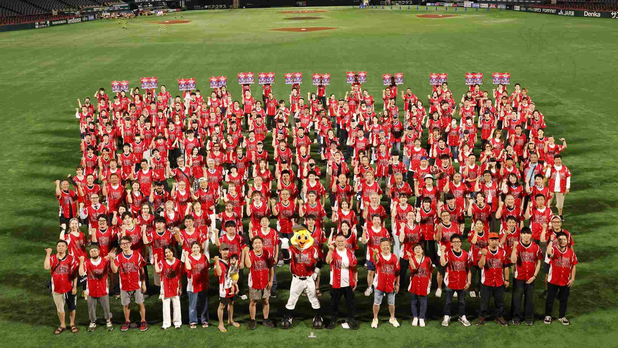 「加盟店の方をドームに招待してグラウンドで決起集会を行いました。みんなで一緒のユニフォームを着て参加いただいて、さらに周東選手会長からのビデオメッセージも流しました。