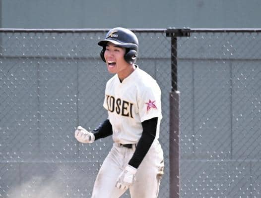 勝利をぐっと引き寄せる一打は、3番打者の一振りから生まれた。七回、点差を5点に広げる3点適時打を放った新谷翔磨選手(2年)は「(決勝進出に)ホッとしています」とほほ笑んだ。