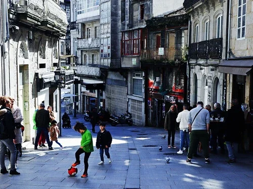 サッカーのある週末、起伏が激しい石畳の市内を歩くと、子どもたちが路上でボールを蹴り合っていた。ワイン片手に夜のセルタ戦談義に花を咲かせる大人たちの目は、優しく子どもたちを追いかける。