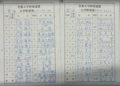 ⚾️ 速報🗒️首都大学野球 ⚾️東海大🆚筑波大 スタメン表が到着🔥🏟️2025秋季リーグ戦1部 2025年10月18日(…