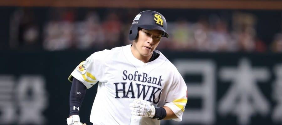 1死一、二塁の好機に打席を迎えたのは、長年主力としてチームを引っ張り、何度も優勝、日本一に導いてきた柳田悠岐外野手だ。ここで日本ハムは上原健太投手に交代。初球は低めに外れてボール、2球目はファウルでカウント1-1となる。そして3球目、外角のボールを流すと、打球はレフトスタンドへと吸い込まれていった。