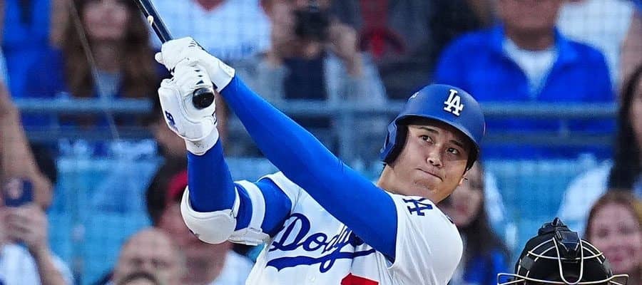 先頭打者本塁打を放ったドジャース・大谷翔平【写真:荒川祐史】